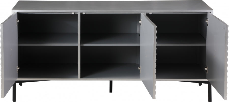 Elegant and eye-catching, the stunning antique silver Glitz Sideboard/Buffet from Meridian Furniture is the perfect addition to any space.