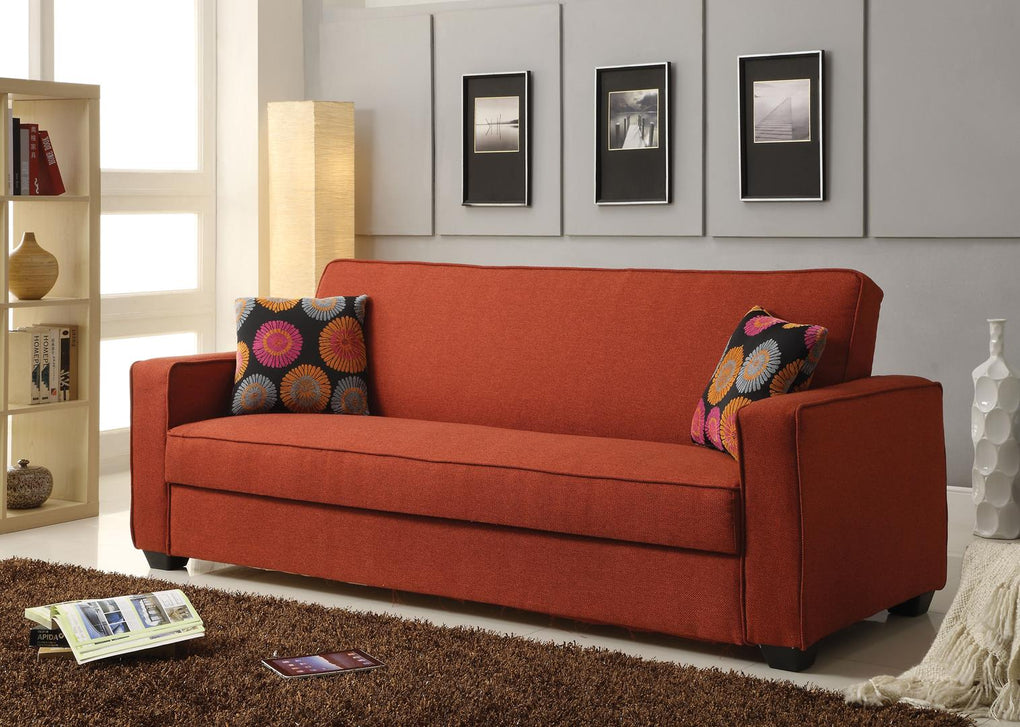 The Shani Traditional adjustable sofa collection offers a sleek contemporary design in bright red linen upholstery and functional storage seat base. It's adjustable feature allows to switch from a sit to sleep position by simply lifting the light weight seat cushion; a quick and easy transformation into a ready to use bed. You will not find a better set that fits both style and comfort for the price.