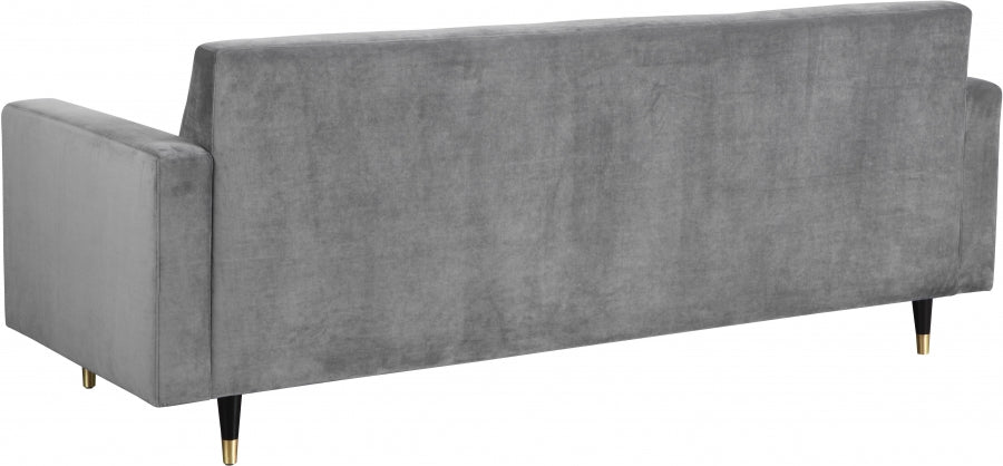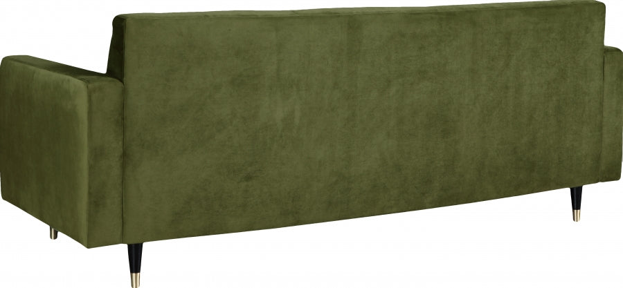 Cozy up to the comfort of this Lola Navy Velvet Sofa. Its rich color adds a jolt of excitement and fun to your space, shaking things up in a neutral-colored room. The back is channel tufted for a beautiful, contemporary look and to help the back cushioning maintain its welcoming loft. Elegant slant-tipped black legs with gold tips lend this sofa a charmingly modern finish and provide a sturdy foundation. Add it on its own, or add the matching loveseat and chair for a coordinated look.
