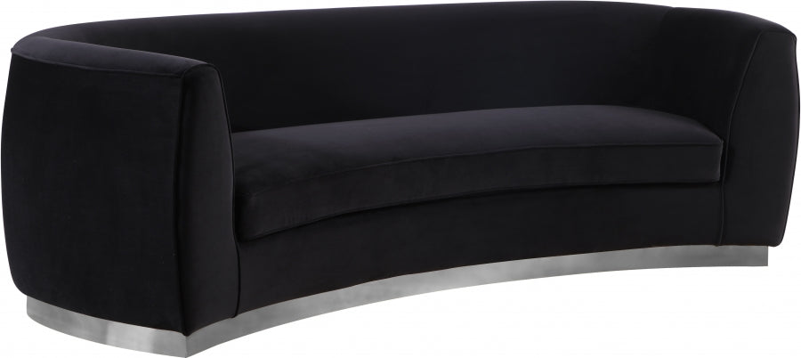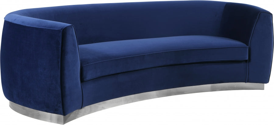 The Julian Collection by Meridian Furniture. Features beautifully upholstered velvet with a shiny chrome stainless steel base. Using the highest quality velvets this set is sure to stun your guests.