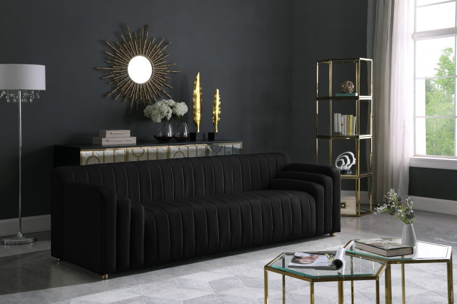 Elegant and eye-catching, the stunning black velvet Naya Sofa from Meridian Furniture is the perfect addition to any space.