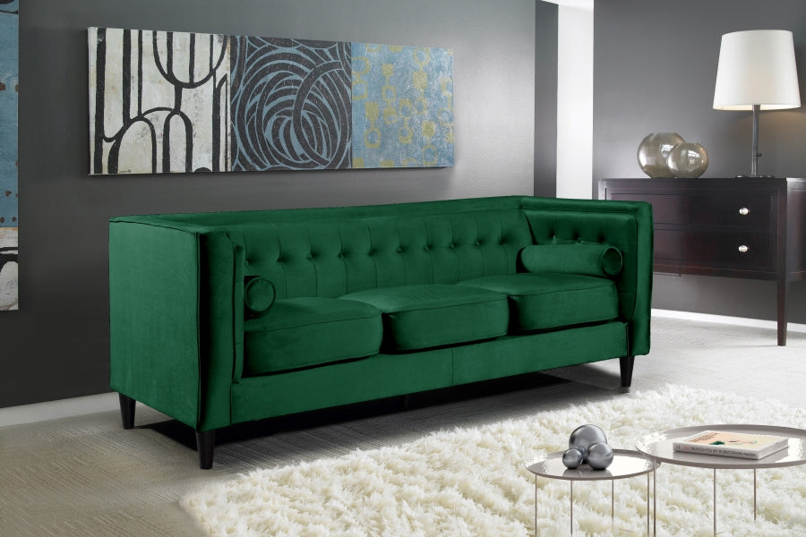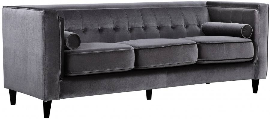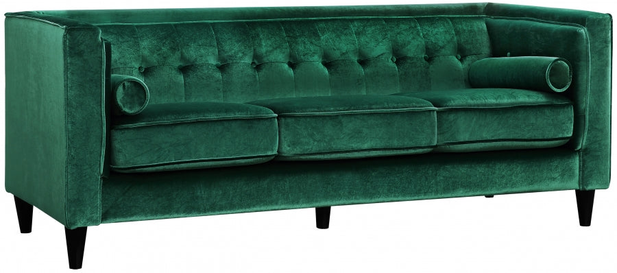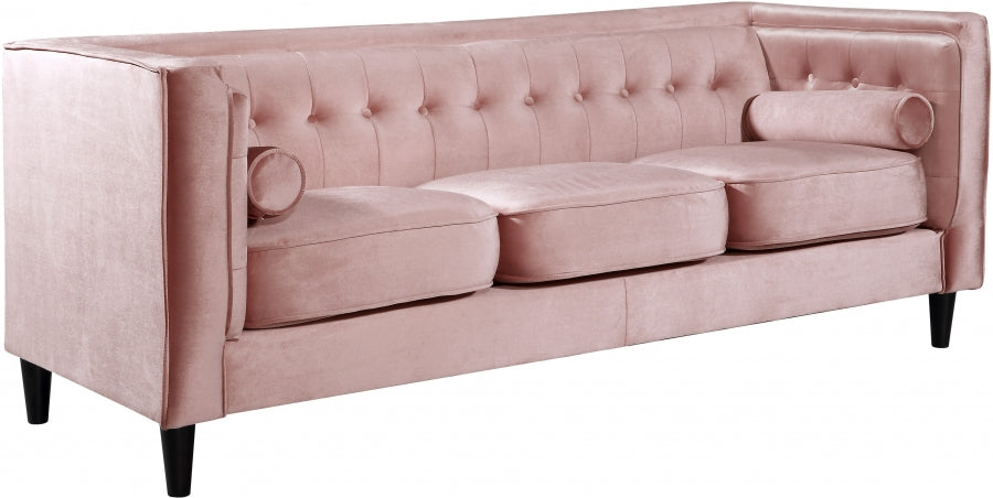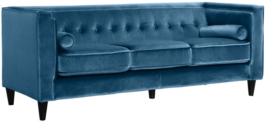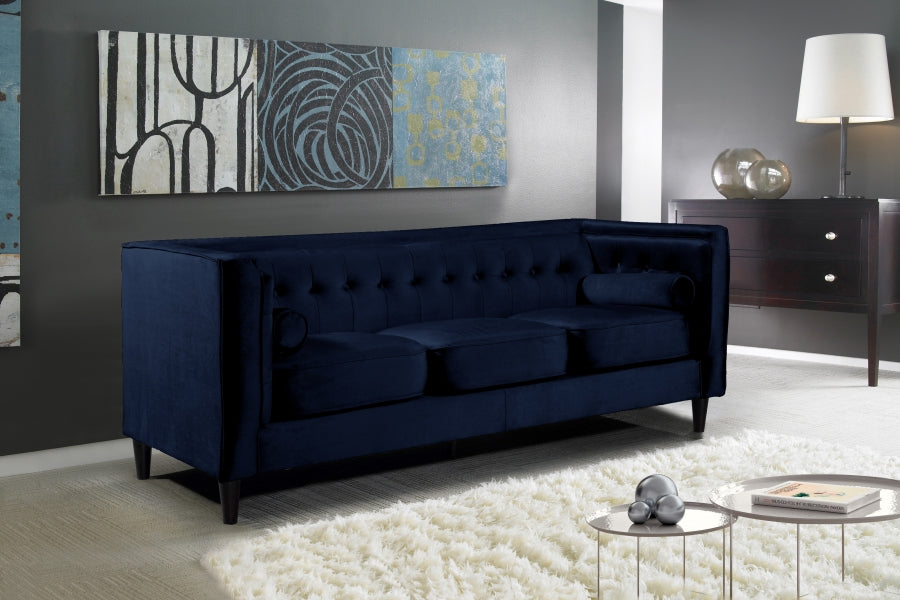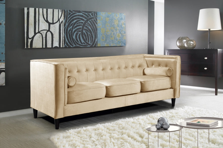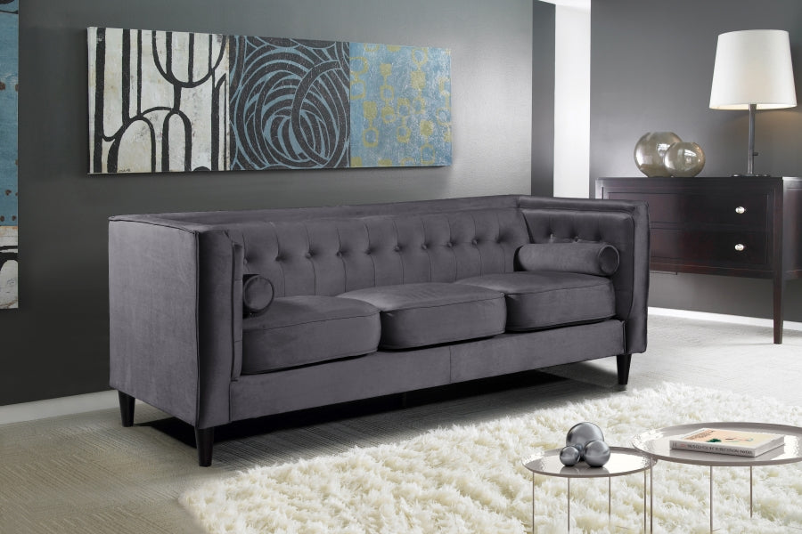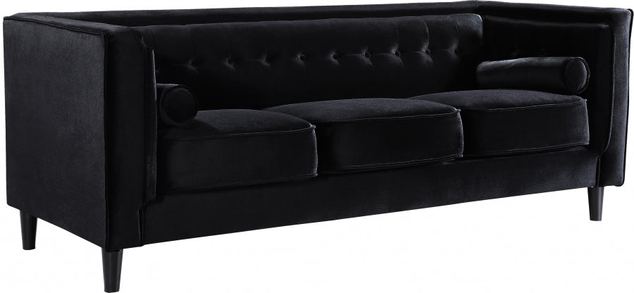 Elegant and eye-catching, the stunning Taylor Living Room from Meridian Furniture is the perfect addition to any space. Rich Velvet covers the plush, comfortable seat, padded with high-density foam and 1 row of button tufts on the back. Strength and beauty is guaranteed with a tight back design and solid wood frame and legs. 2 matching bolster pillows included.