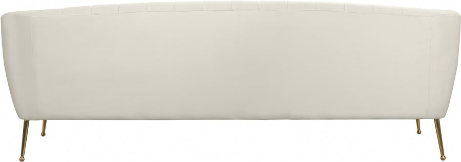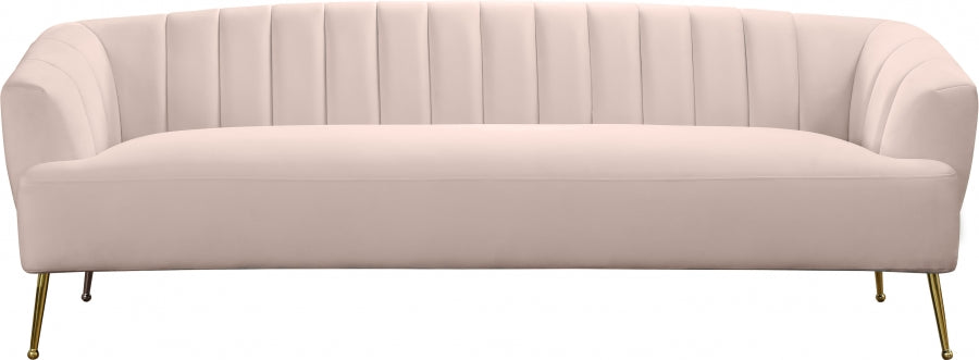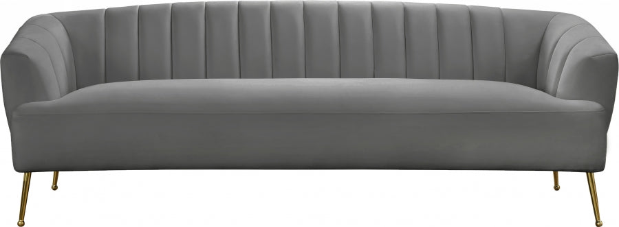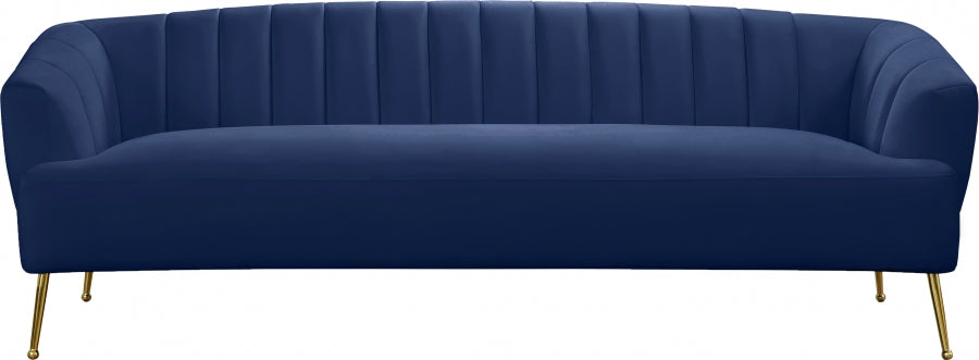 Dress up your living room space with this Tori Velvet Sofa. This plush sofa features sleek black velvet upholstery that covers every square inch, adding a sumptuous and svelte look to your room. The gold legs with a ball design on the foot adds to the elegant look of this pretty chair, and deep channel tufting adds loft to the back and arms for a lavish feel when you sit down to relax and unwind at day’s end.