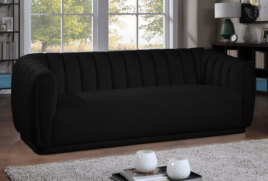Elegant and eye-catching, the stunning black velvet Dixie Sofa from Meridian Furniture is the perfect addition to any space.