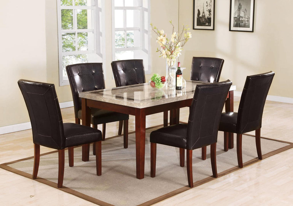 Earline Dining Table, White Marble w/Brown Insert & Walnut