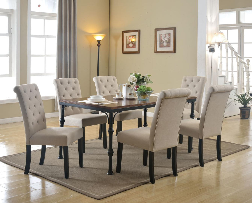 The Vriel collection creates an inviting space to entertain family and friends. Features a rectangular oak table top with an antique black frame which creates a different look for your dining area. The legs are a black metal with beautiful turned details. Chairs sold separately.