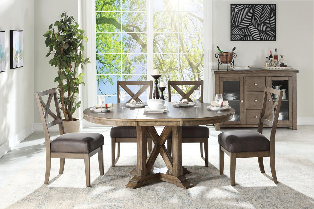 The Boyden dining table is an eye-catching mix of convenience and style that will anchor any dining room. This wood top table features beech and pine veneer and is complemented by a wood pedestal in a unique X-Shapedd design. Merging high quality with the high design for a fresh twist that has a modern touch, this contemporary dining set is a dazzling way to entertain guests in your home.