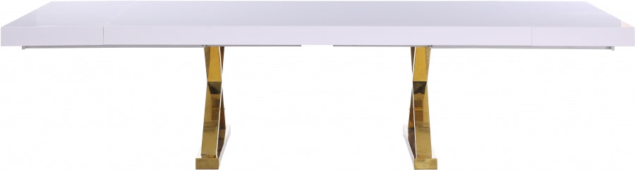 Elegant and eye-catching, the stunning white lacquer Excel Extendable Dining Table (3 Boxes) from Meridian Furniture is the perfect addition to any space.