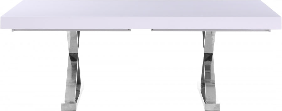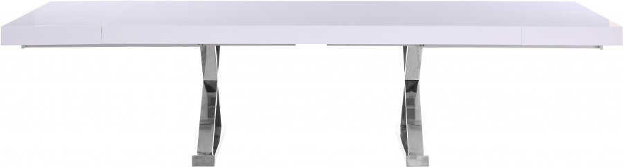 Elegant and eye-catching, the stunning white lacquer Excel Extendable Dining Table (3 Boxes) from Meridian Furniture is the perfect addition to any space.