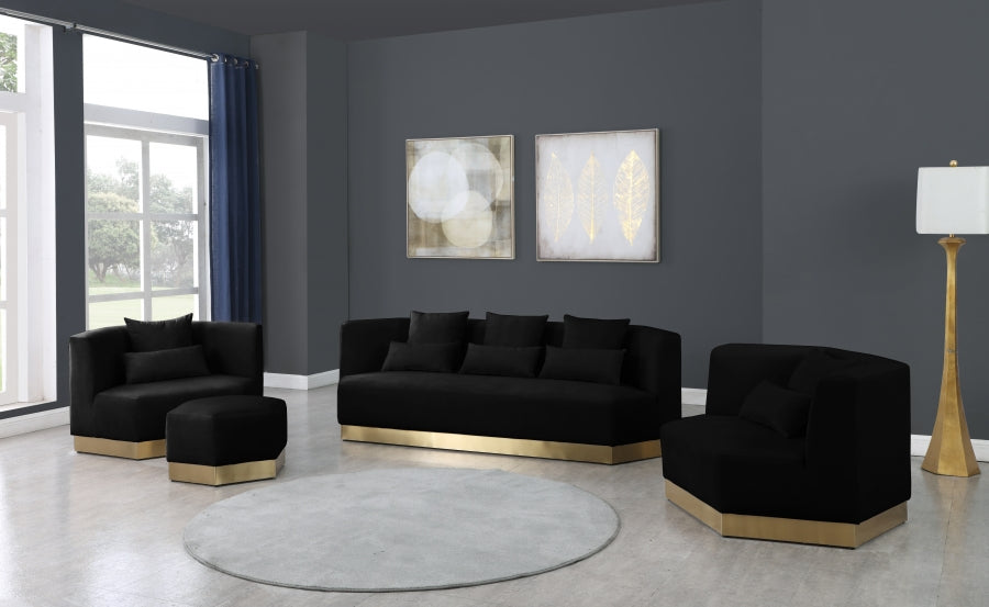Elegant and eye-catching, the stunning black velvet Marquis Ottoman from Meridian Furniture is the perfect addition to any space.