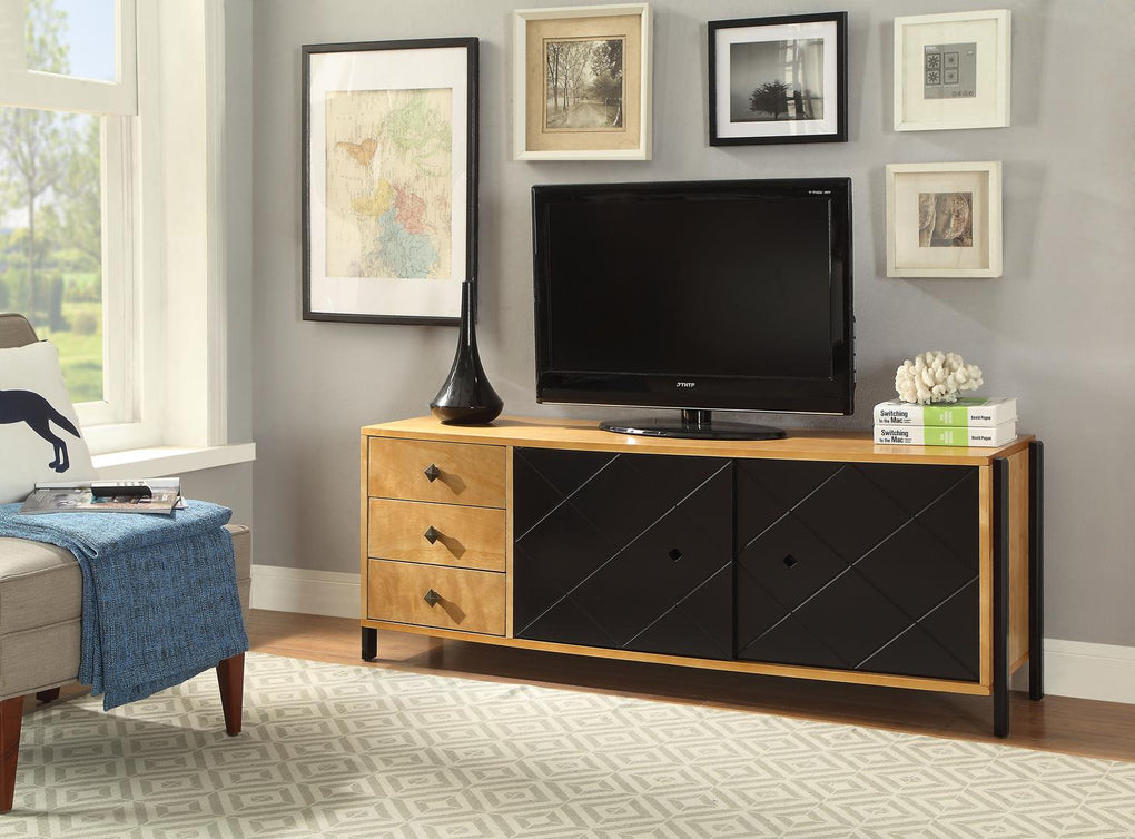 The Honna console table is the perfect piece to update your home and provide extra storage with a great contemporary look. This console table has plenty of room on top to display decorative items, and the 3 drawers and shelf offer additional storage space. The natural & black finish covered with a beautiful diamond grid pattern come together to give this console a sophisticated look.