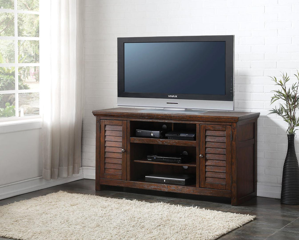The Evrard collection versatility and style will blend masterfully in your living room area. The storage offers plenty of space to keep your entertainment components: the media TV Stand includes two doors to reveal hidden storage, while the middle shelves offer convenient storage for accessories. Carefully constructed from selected wood and veneers in rich dark oak finish which gives this piece a contemporary and sleek appeal.