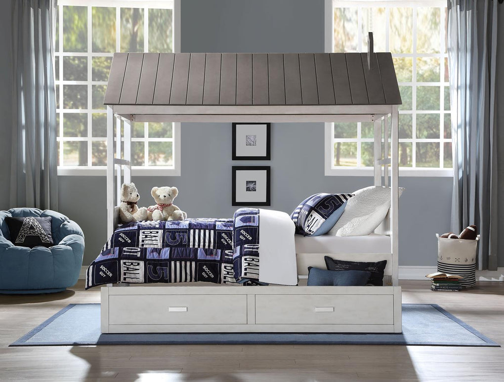 Tree House II Twin Bed, Weathered White & Washed Gray