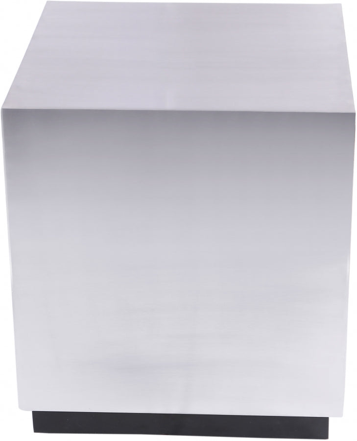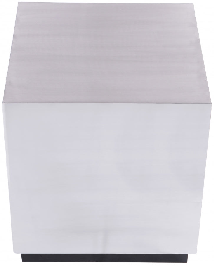 Make a bold statement inside your home with this eye-catching Valle End table from Meridian Furniture. Featuring a solid square design made crafted out of brushed chrome metal with a matte black base, this contemporary table offers sturdiness, durability, and style. Its chrome metal and matte black colors complement each other and add just a touch of sophistication to your existing home decor. This table is versatile so it can be used in any room in your living space.
