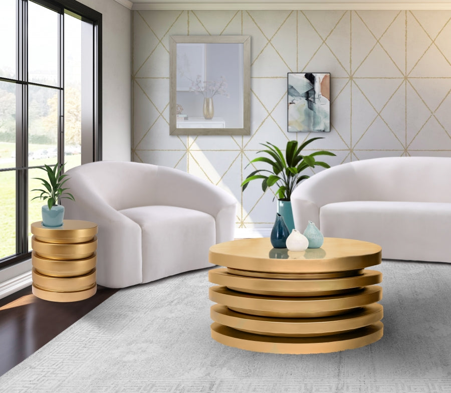 Elegant and eye-catching, the stunning brushed gold Levels End Table from Meridian Furniture is the perfect addition to any space.