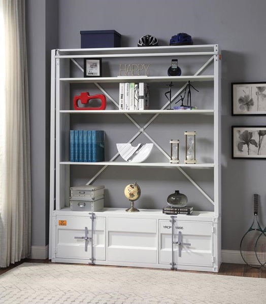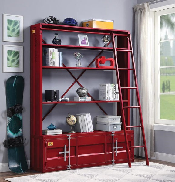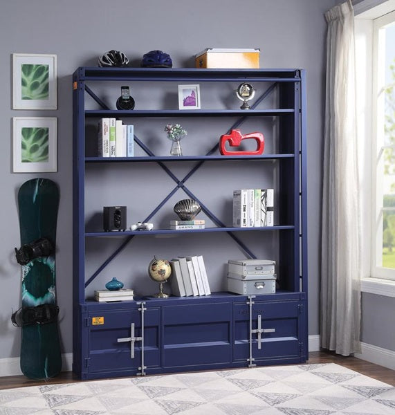 The impressive Cargo bookshelf design fuses modern and industrial themes into an impressive look. This unique bookshelf features metal shelf compartments, two doors at the base for storage, and can convert into a TV Stand. This bookshelf transforms a room from ordinary into something playful and unique with plenty of storage space for your living room essentials.