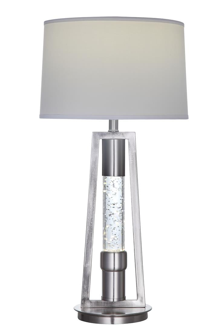 Illuminate your space in style with this Ovesen lighting collection, a must-have that will add an elegant feel to any room. Featuring a brushed nickel metal base, the construction is sturdy yet stylish. Within the glass tube, there are sequins and water; and the sequins will be flowing once the light is turned on. Unique, beautiful and chic, this lighting collection will add an artful touch and be the centerpiece in any room.