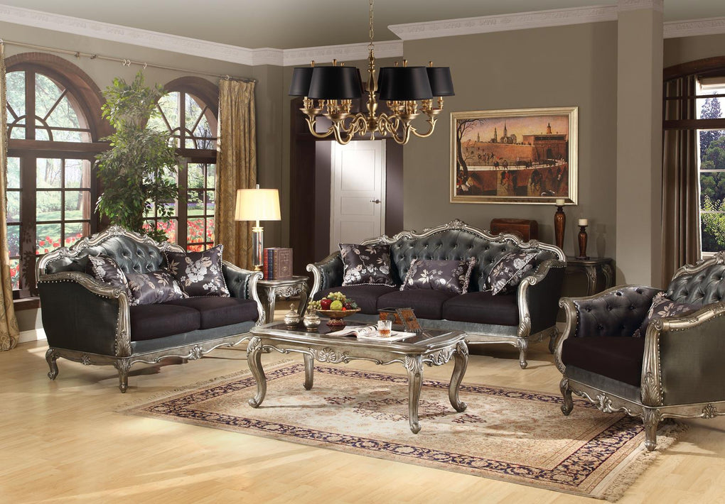Designed exclusively for ACME, the Chantelle sofa collection is filled with romantic wonder. The French rococo tufted seat back complemented with a broad selection of granite top coffee table creates an elegant and luxurious living room.