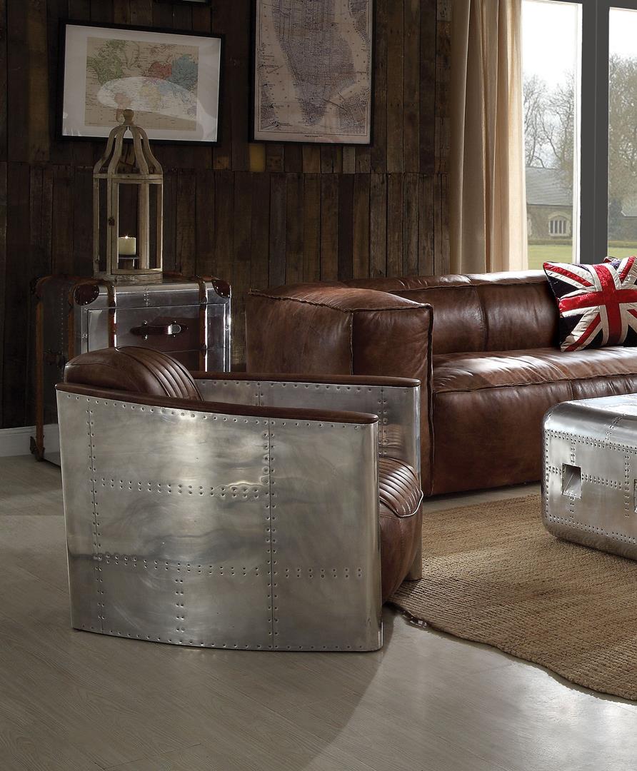 Brancaster Accent Chair, Retro Brown Top Grain Leather & Aluminum