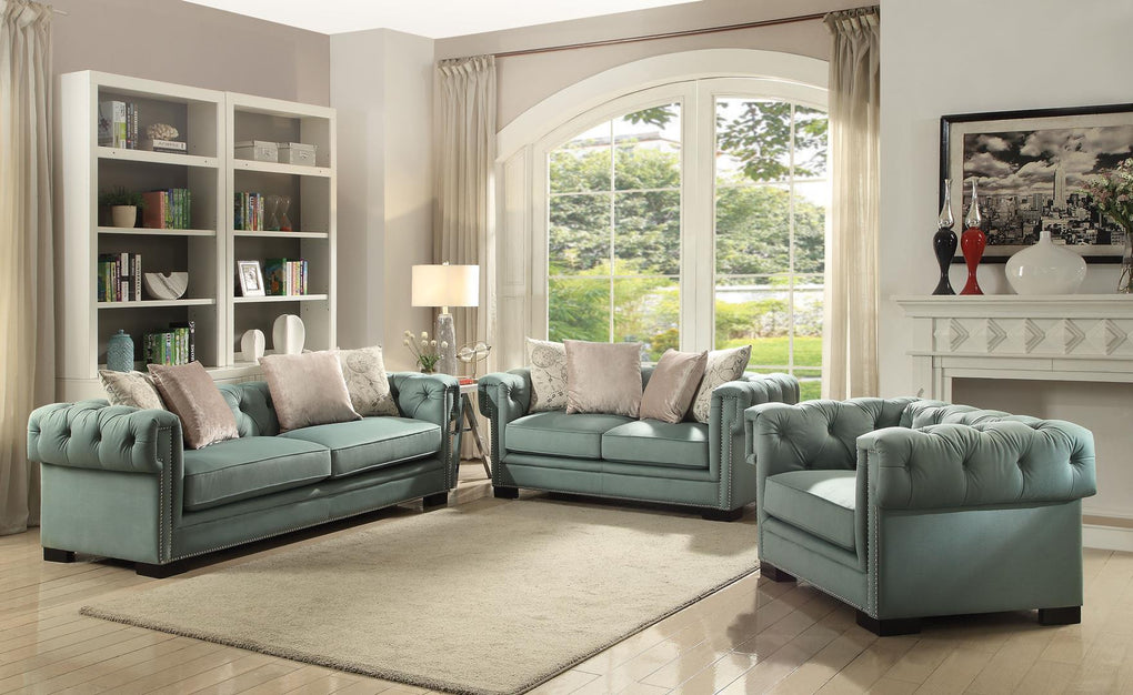 With the newest modern design, the Eulalia chair offers a cozy and elegant look. This beautiful chair features a kiln dried solid wood frame, hand-hammered shoe Nailheads, feather down cushions and eight-way hand-tied spring suspension to provide maximum support and comfort. The smooth lines of this classic chair are accented by gorgeous hand-applied button tufting on the rear cushion, arms and front.