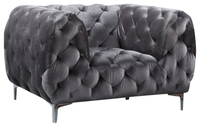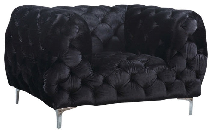 Elegant and eye-catching, the stunning Mercer Living Room from Meridian Furniture is the perfect addition to any space. Rich Velvet covers the plush, comfortable seat, padded with high-density foam and modern tufted design. Strength and beauty is guaranteed with a solid wood frame and chrome legs.