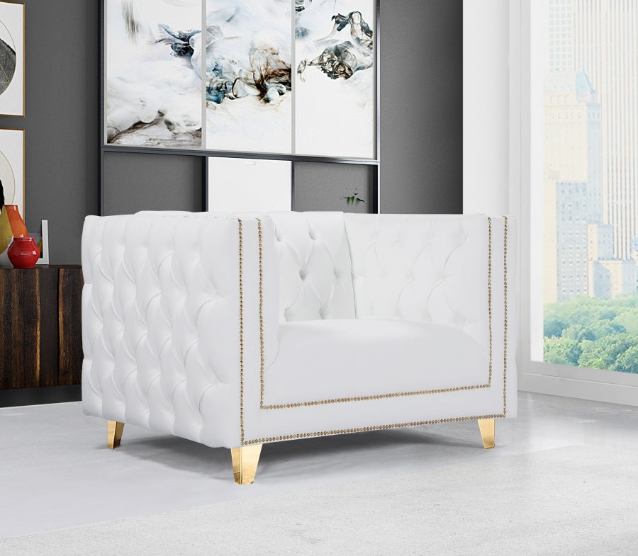 Elegant and eye-catching, the stunning white faux leather Michelle Chair from Meridian Furniture is the perfect addition to any space.