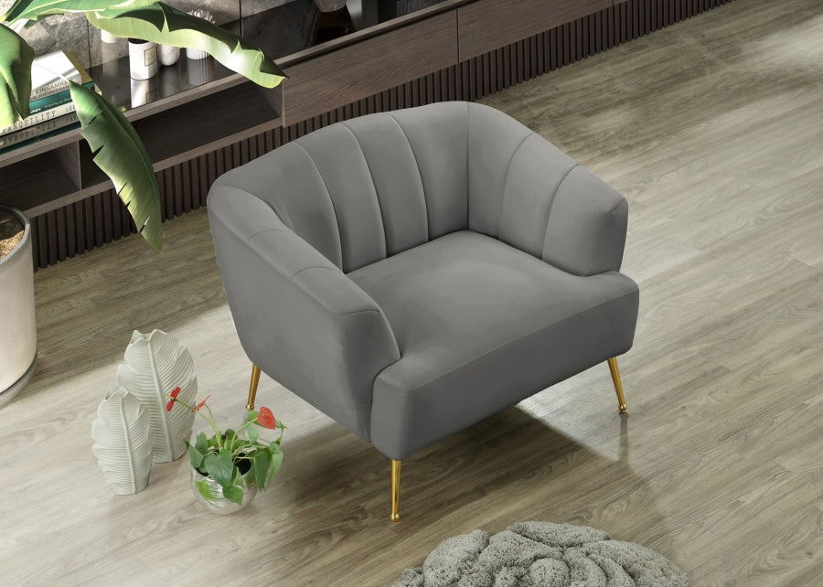 Dress up your living room space with this Tori Velvet Chair. This plush chair features sleek black velvet upholstery that covers every square inch, adding a sumptuous and svelte look to your room. The gold legs with a ball design on the foot adds to the elegant look of this pretty chair, and deep channel tufting adds loft to the back and arms for a lavish feel when you sit down to relax and unwind at day’s end.
