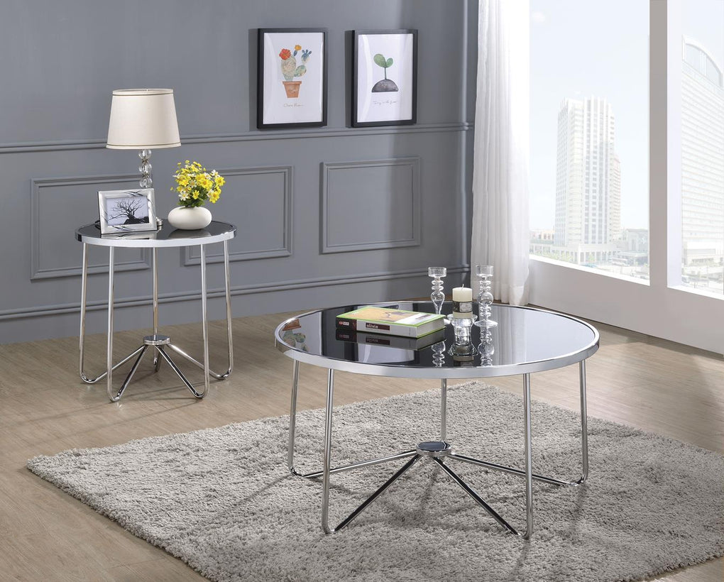 Alivia End Table, Chrome & Black Glass
