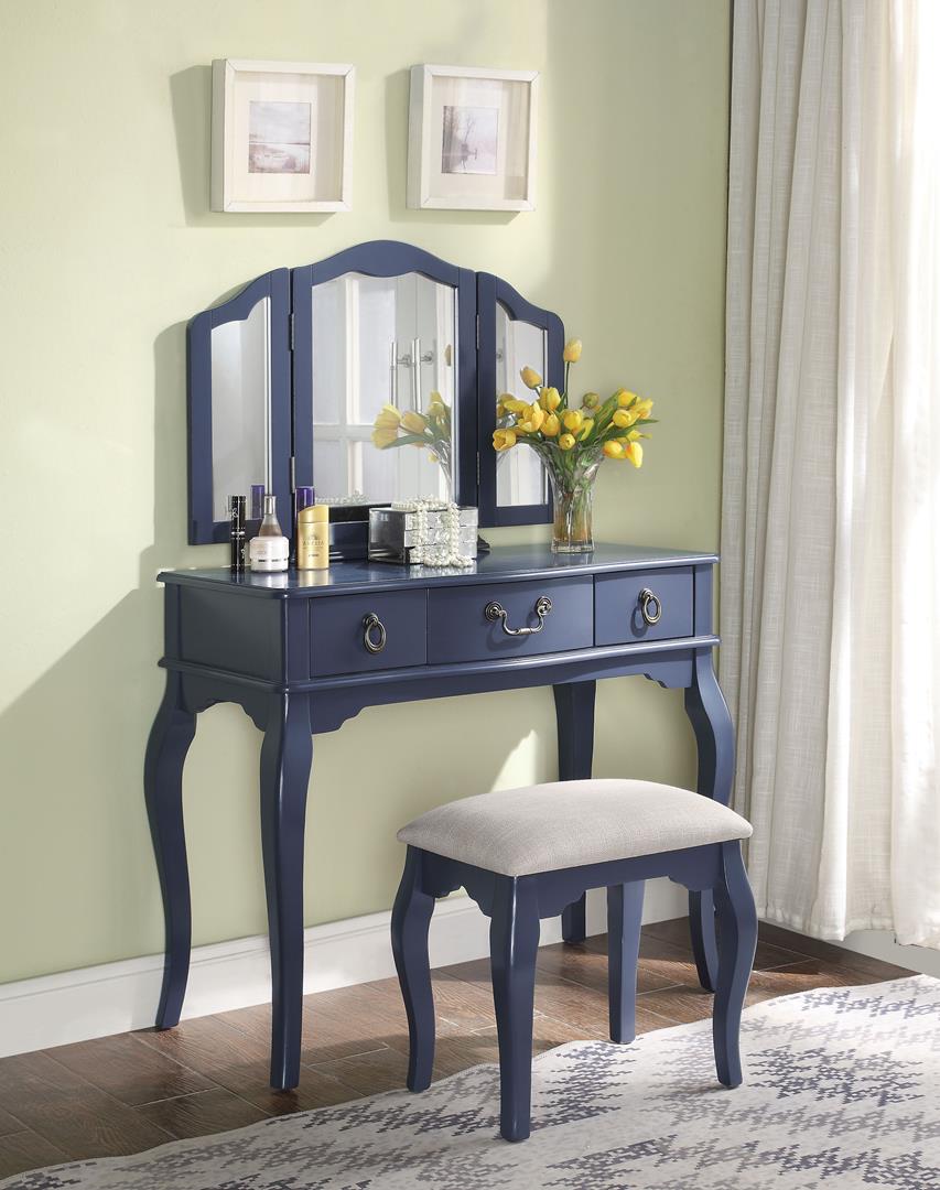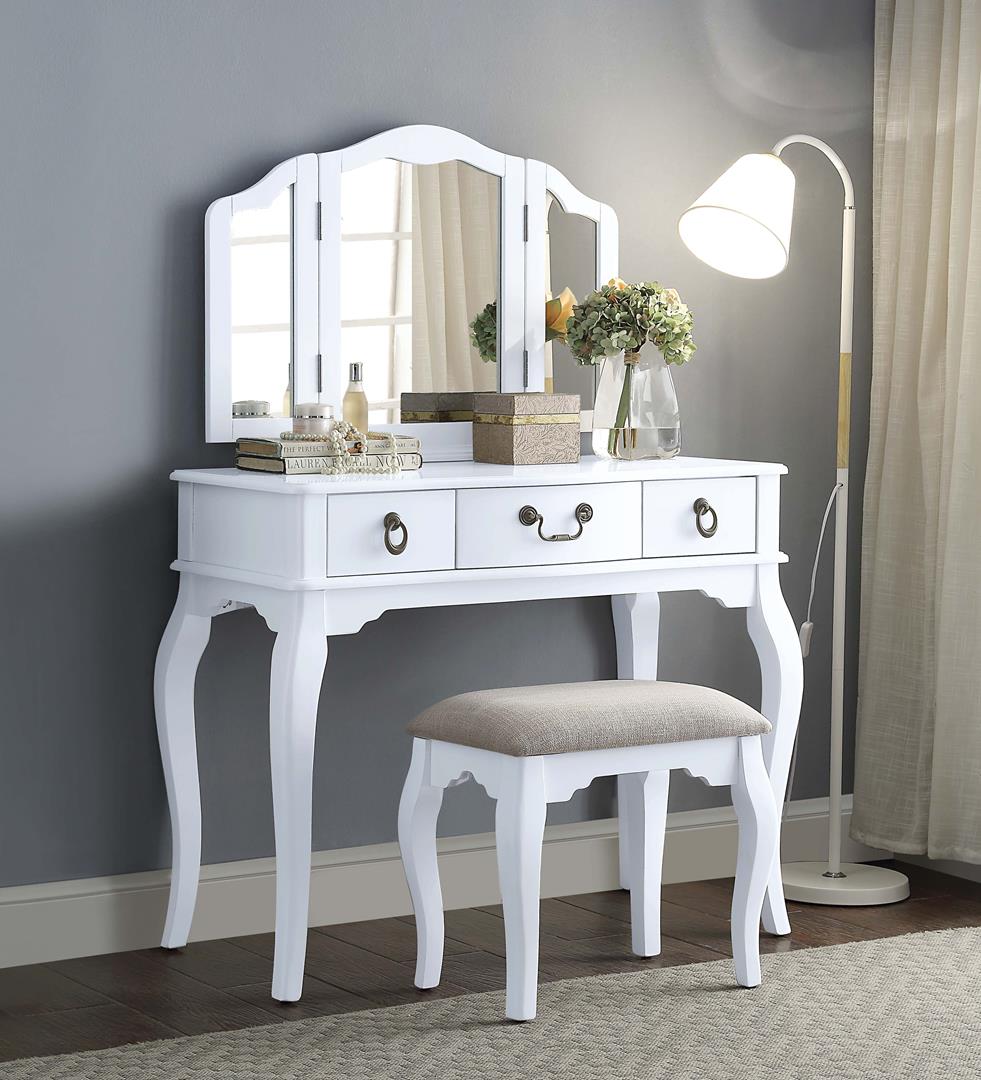 - Rectangular Vanity Desk, Tri-Fold Mirror & Armless Stool (Backless)