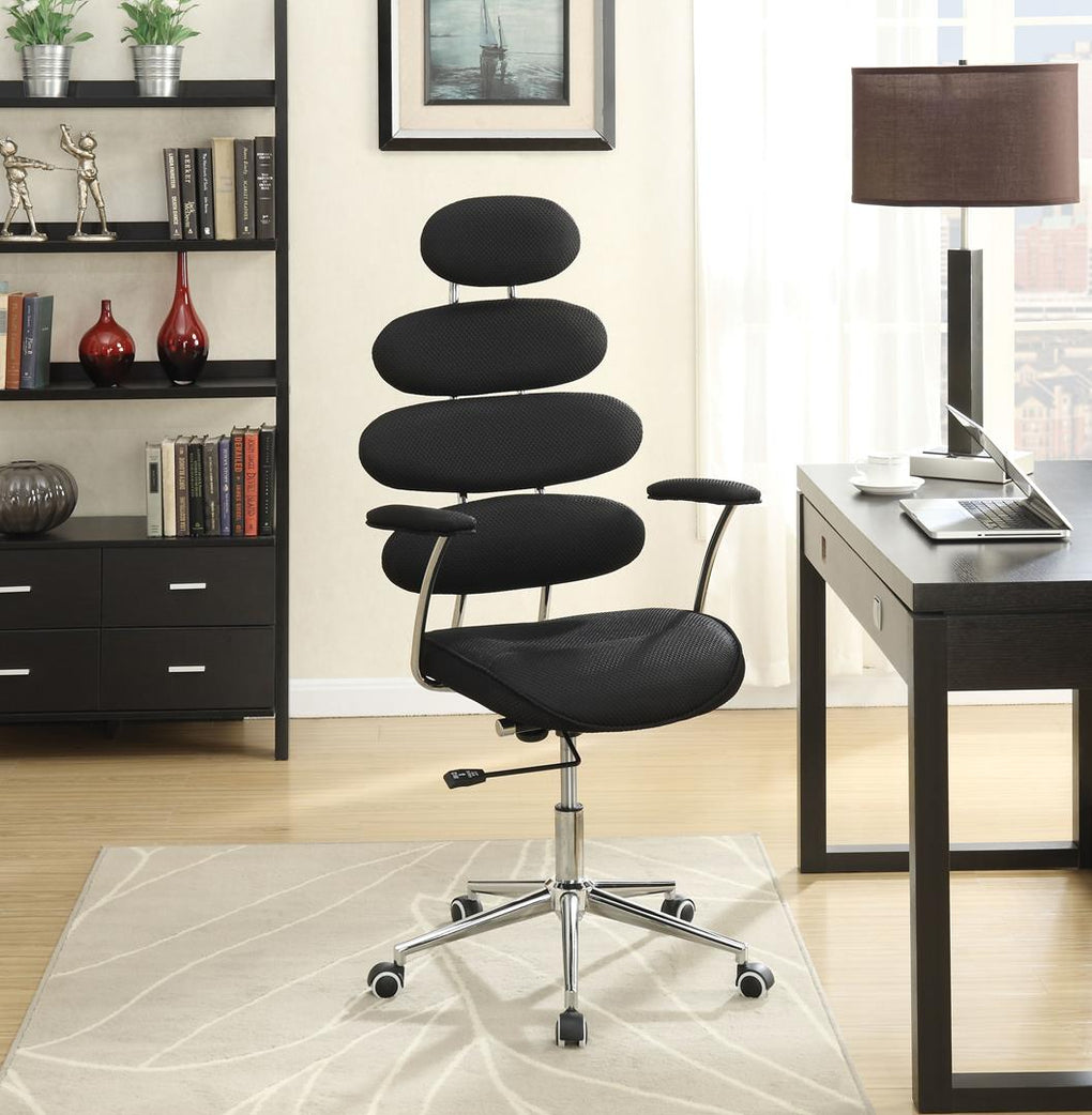 The Noma Executive Office Chair it's ideal for any casual or professional working area, provides a comfortable support with a cozy and convenient design. Carefully crafted in black mesh fabric, features high backrest design, stylish armrests, adjustable lift seat, and is complemented by five-star base with casters for easy mobility.