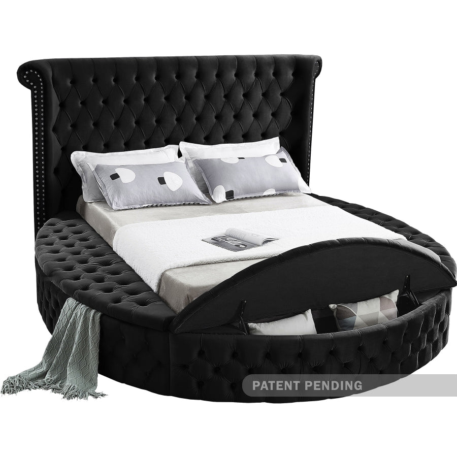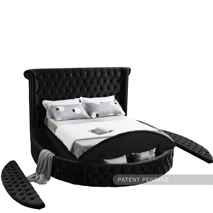 Elegant and eye-catching, the stunning black velvet Luxus Full Bed (3 Boxes) from Meridian Furniture is the perfect addition to any space.