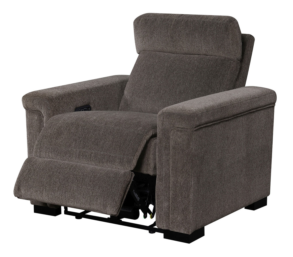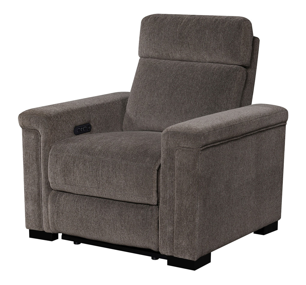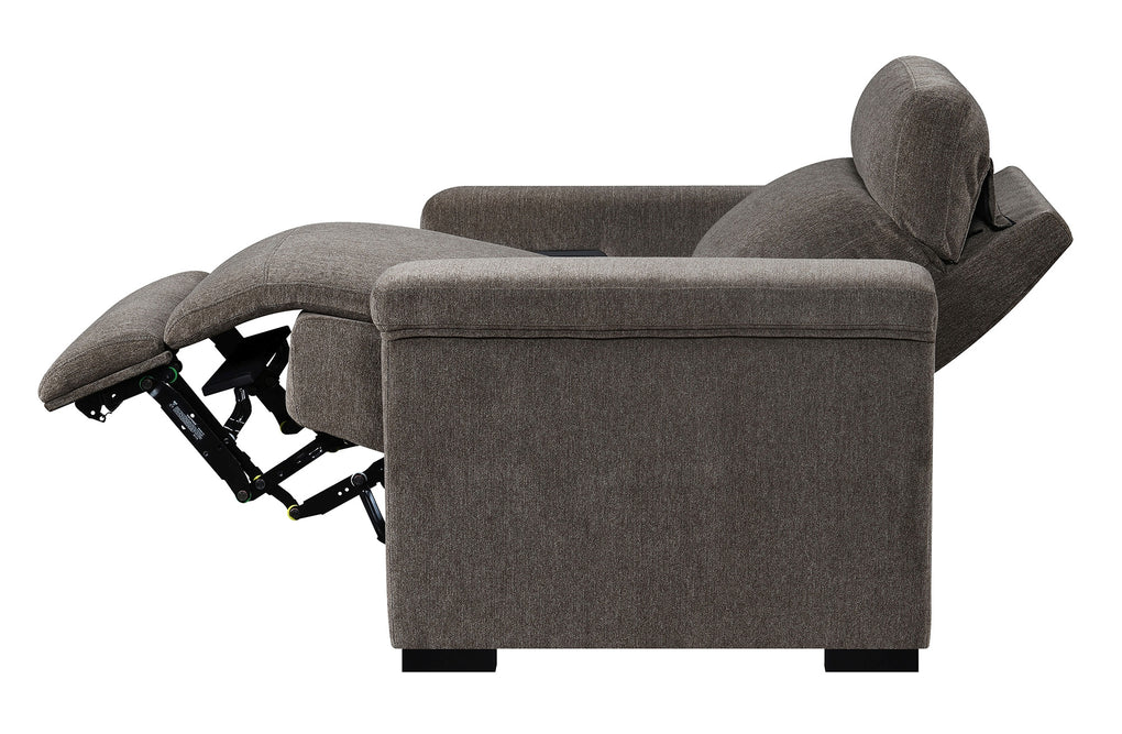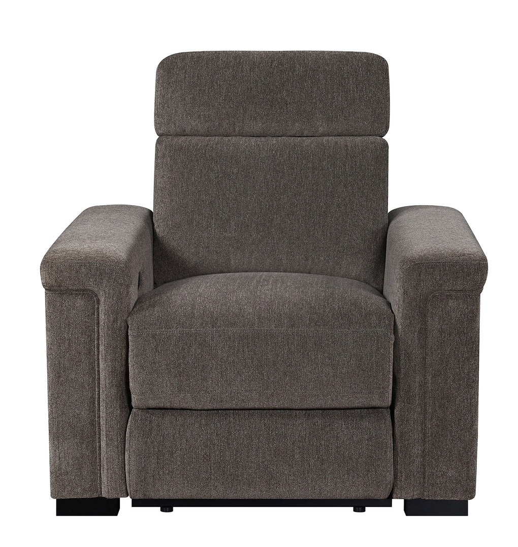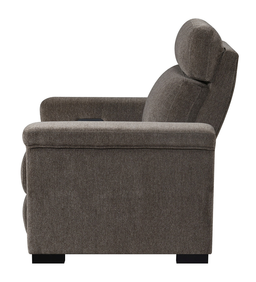 Power Recliner with power headrest, hidden controls w/USB , and made up in a microdenier chenille.